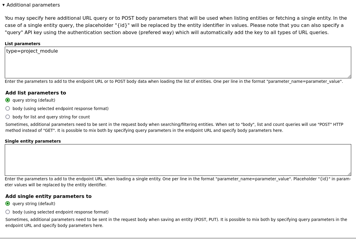 List parameters: type=project_module