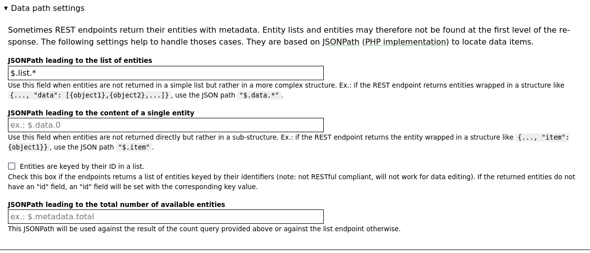 JSONPath leading to the list of entities: $.list.*