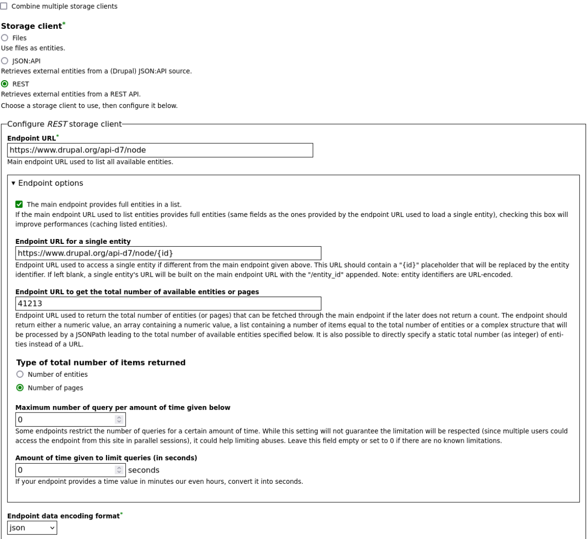 How to configure External Entities for use with the Drupal.org REST API.