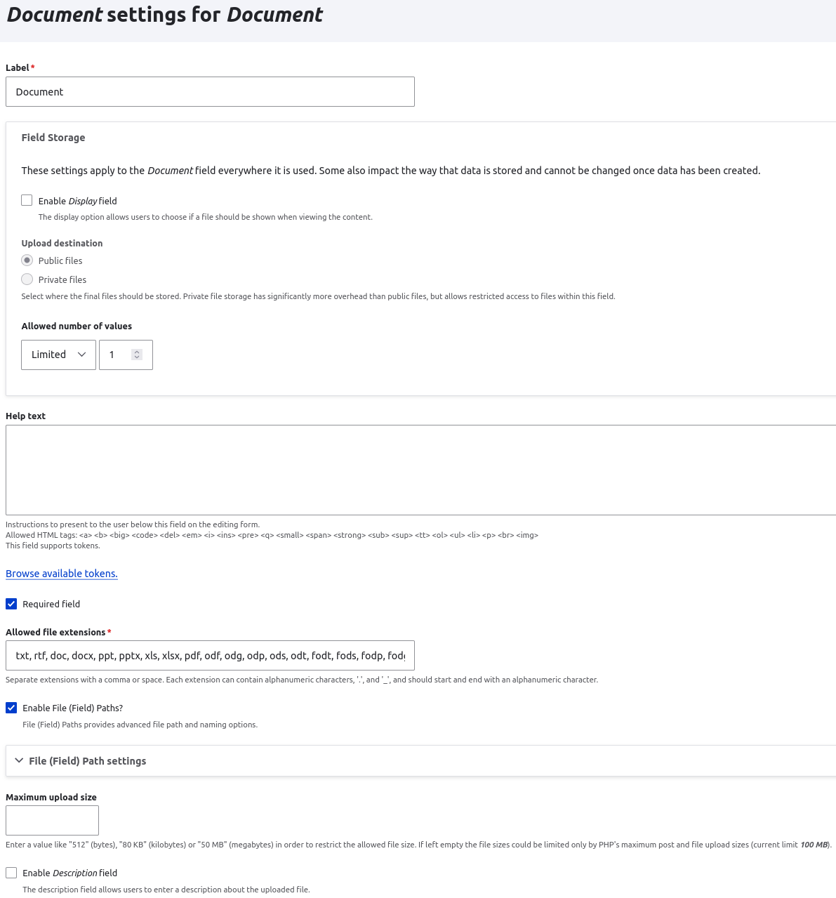 The field storage settings are fixed, like the number of items allowed.