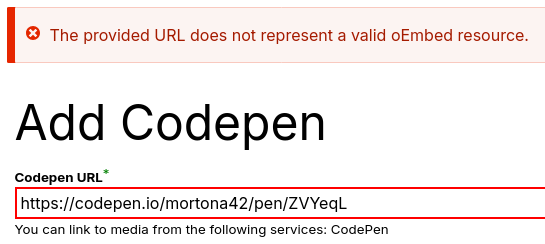 Check out mglaman's notes on how to define Codepen as a media type programmatically.