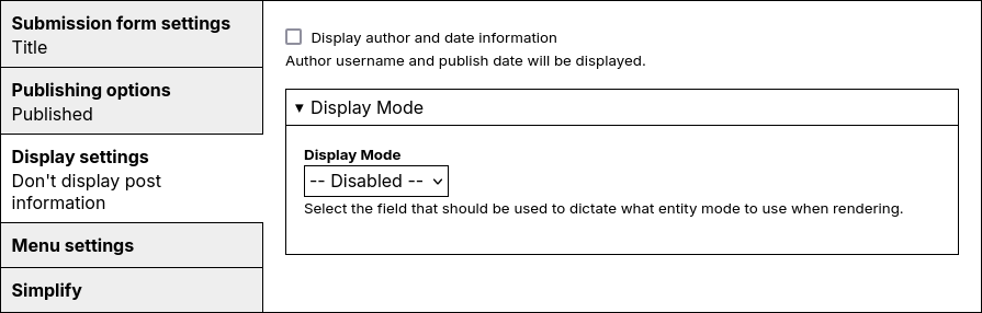 Configure in the entity bundle's settings, select field to control display mode.