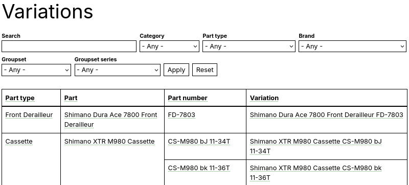 Created 2 indexes, one that has Parts that reference Variations, and the other that has Variations that reference Parts, to test how the views can be configured.